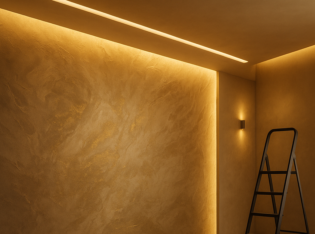 Progettiamo controsoffitti e pareti con soluzioni luminose LED integrate per creare atmosfere moderne e funzionali.